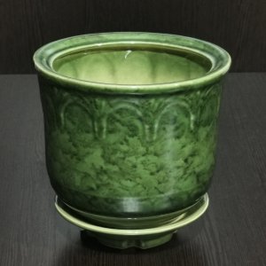 Керамический горшок с поддоном "Лилия №3", зеленый.