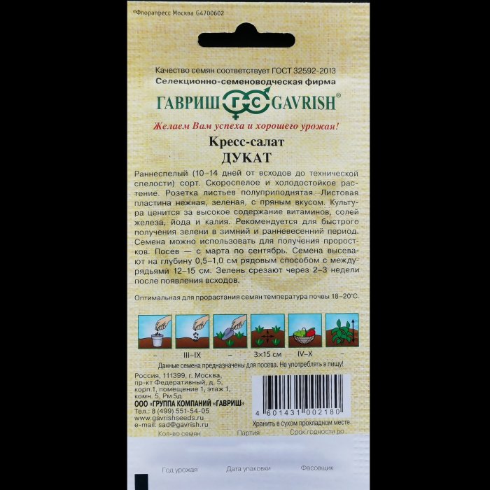 Кресс-салат "Дукат", серия "Семена от автора", 1 гр. Гавриш.