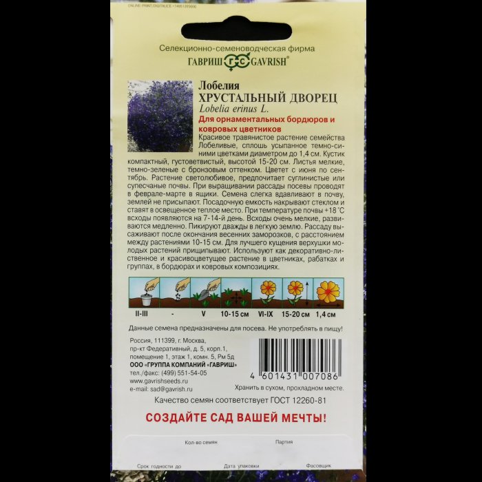 Лобелия "Хрустальный дворец", 0,01 гр. Гавриш.