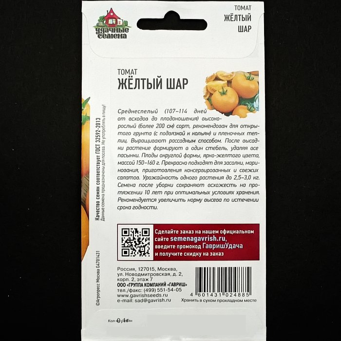 Томат "Желтый шар", серия "Удачные семена", 0,05 гр. Гавриш.