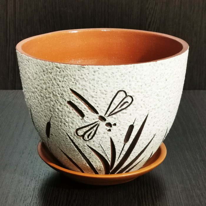 Керамический горшок "Бабочка текстурный №2", V-2,3 л. D-19 см. H-14 см. Котовская Майолика.
