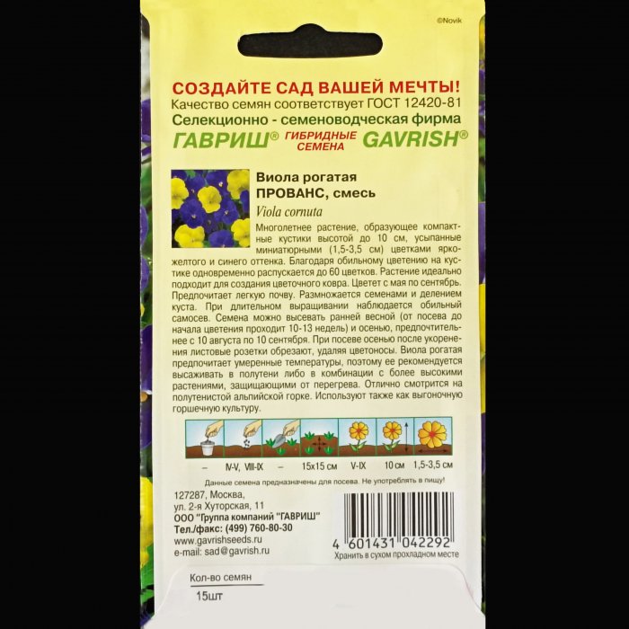Анютины глазки (Виола) "Прованс" рогатая, 10 шт. Гавриш.
