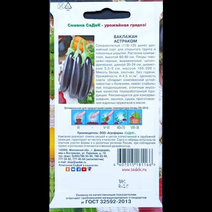 Баклажан "Астраком", Евро, 0,2 гр. Седек.