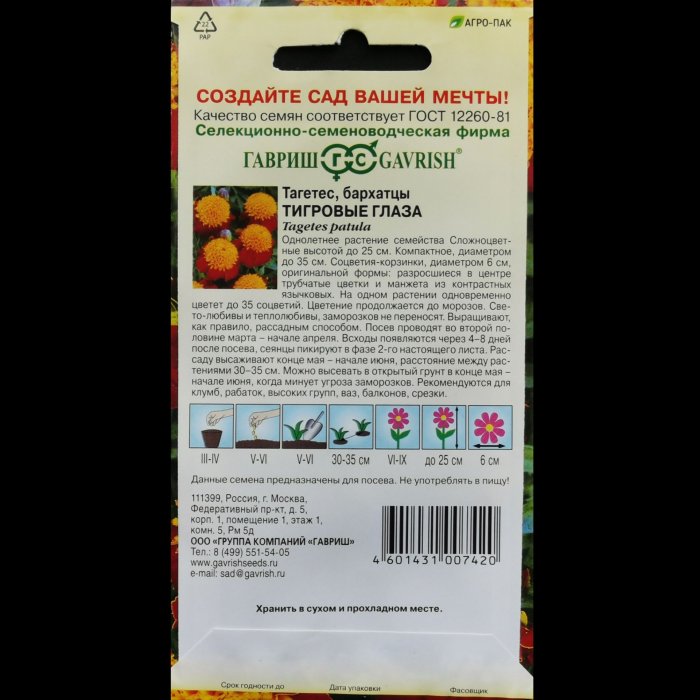 Бархатцы (тагетес) "Тигровый глаз", отклоненные, 0,3 гр. Гавриш.