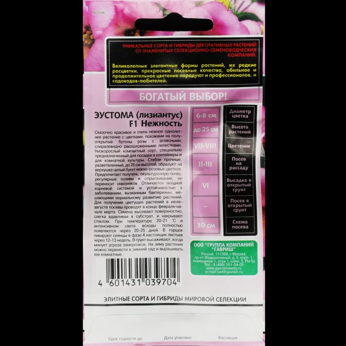 Эустома "Нежность", F1, низкорослая, горшечная, розовая, серия "Эксклюзив", 4 шт. Гавриш.