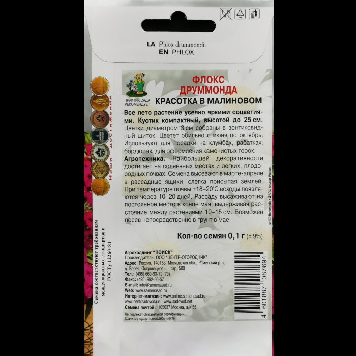Флокс "Красотка в малиновом", "Друммонда", 0,1 гр. Поиск.