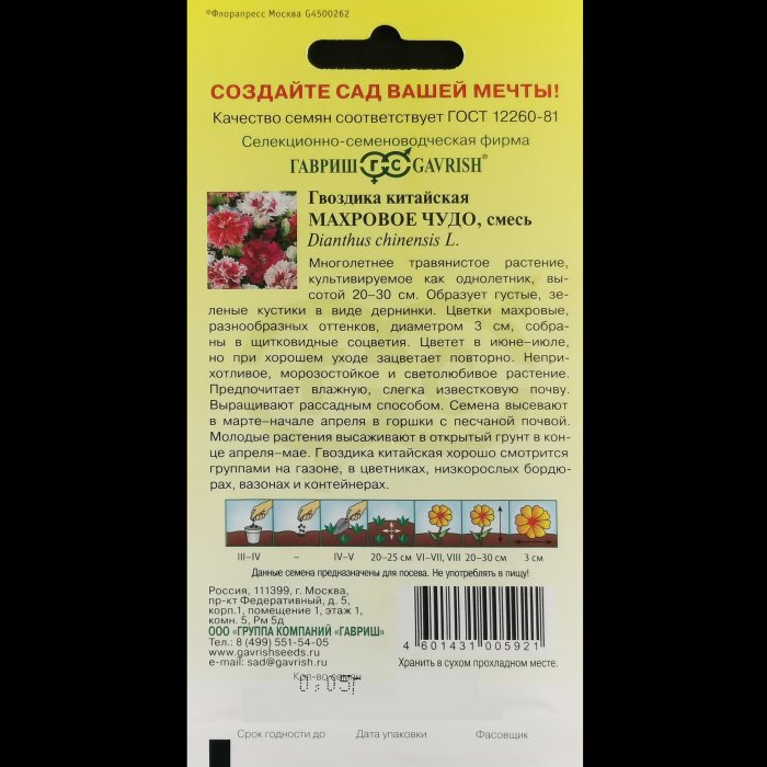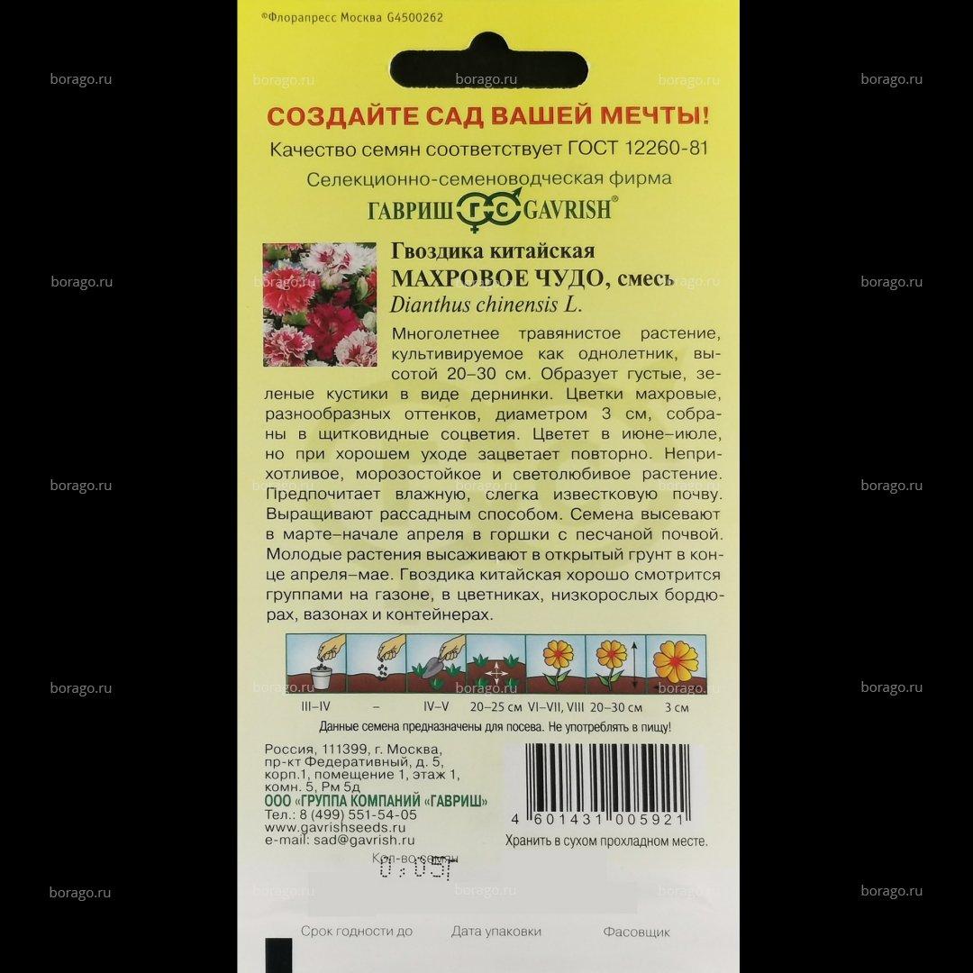 Гвоздика "Махровое чудо", китайская, смесь 0,05 гр. Гавриш.