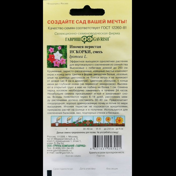 Ипомея "Искорки", перистая, 0,5 гр. Гавриш.
