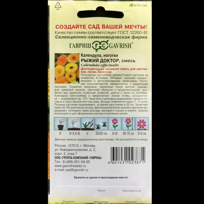 Календула "Рыжий доктор", смесь, 0,3 гр. Гавриш.
