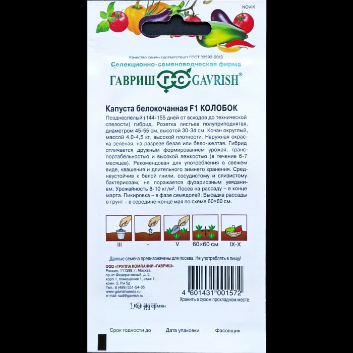 Капуста "Колобок", F1, белокочанная, 10 шт. Гавриш.