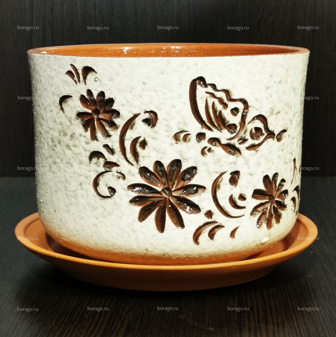 Керамический горшок "Бабочка текстурный №2", V-2,3 л. D-19 см. H-14 см. Котовская Майолика.