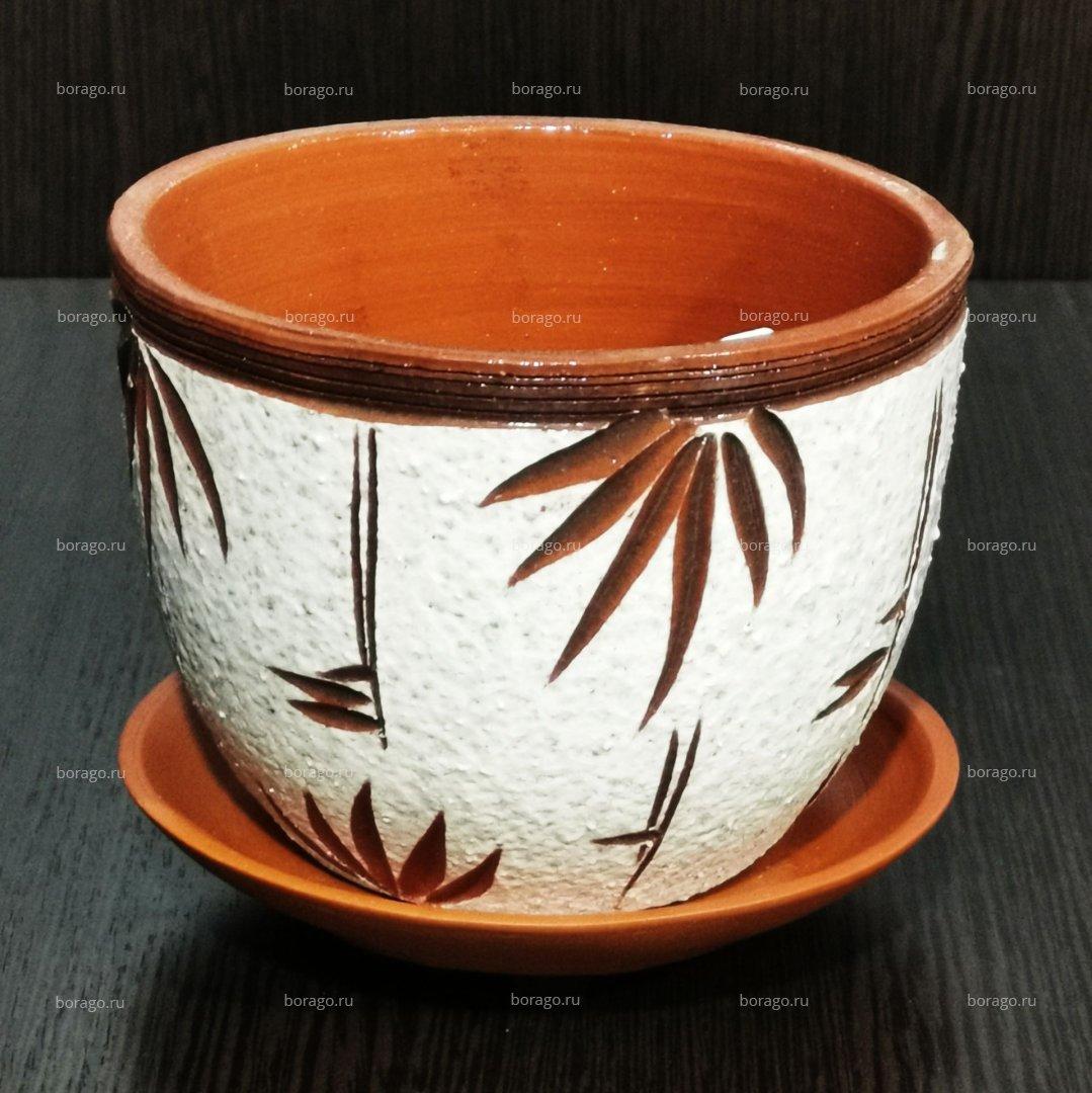 Керамический горшок "Бамбук текстурный №4", V-0,6 л. D-12 см. H-9,5 см. Котовская Майолика.
