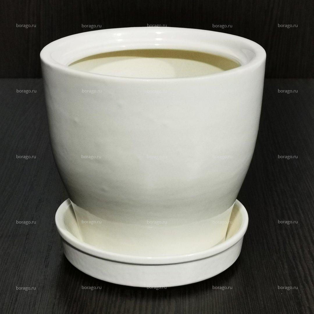 Керамический горшок "Крокус №3", 1 сорт, белый глянец. Котовская керамика.