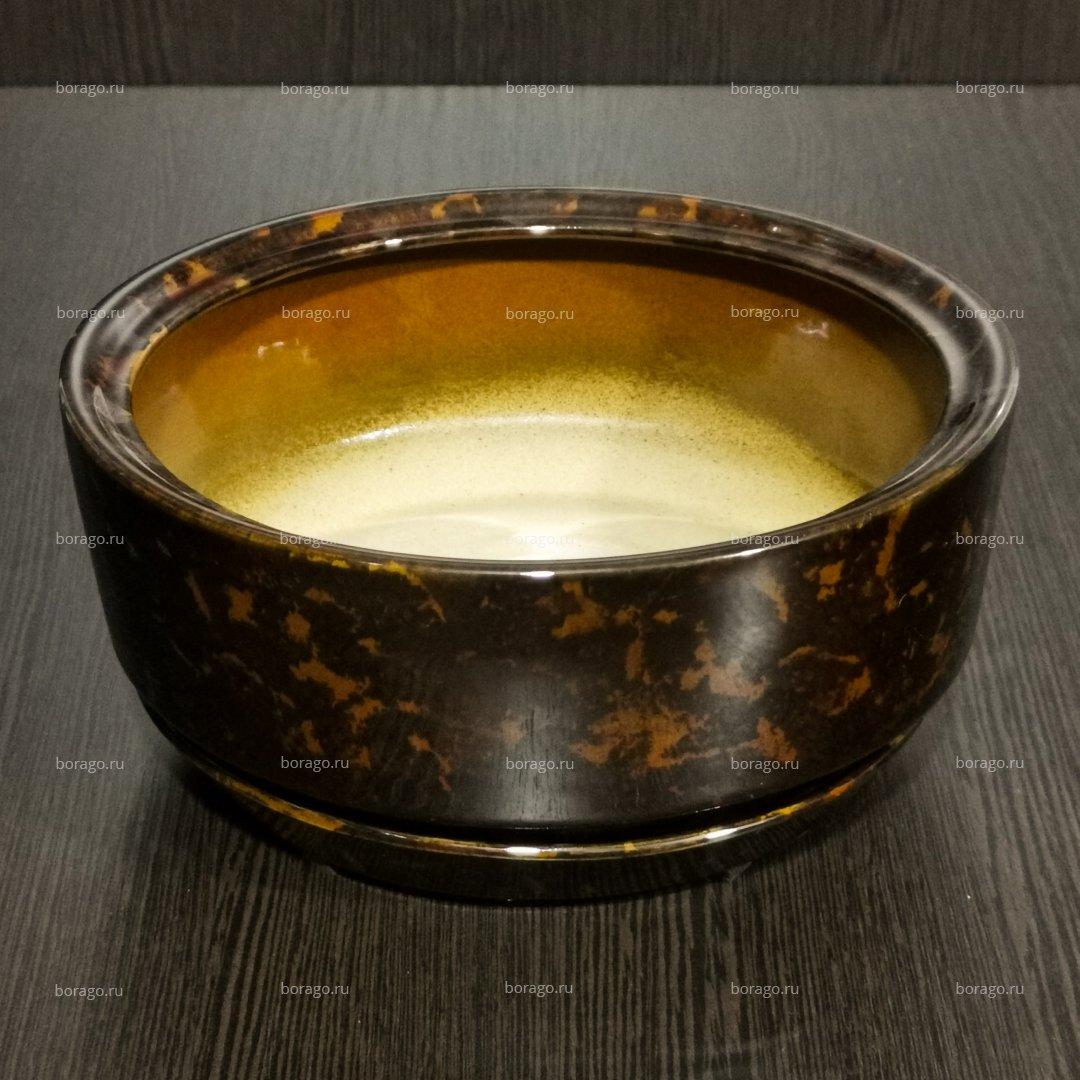 Керамический горшок с поддоном "Бонсай", 1 сорт, коричневый. Котовская керамика.