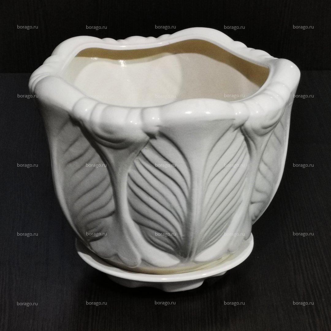Керамический горшок с поддоном "Дубок №2", 1 сорт, белый. Котовская керамика.