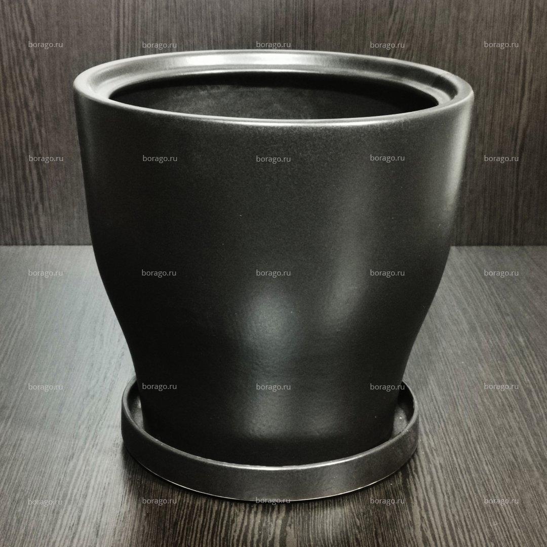 Керамический горшок с поддоном "Крокус №1", 1 сорт, черный матовый. Котовская керамика.