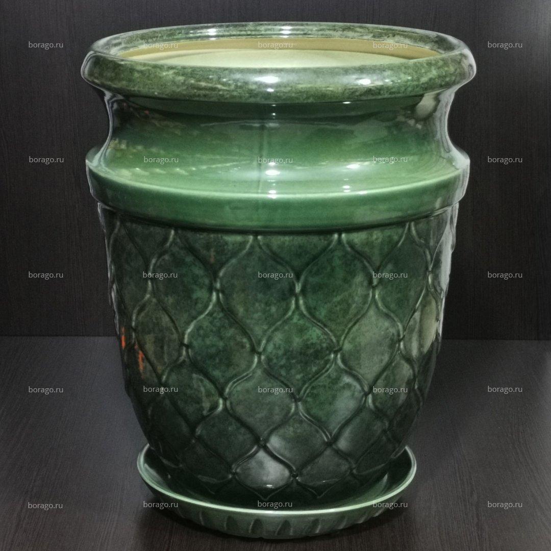 Керамический горшок с поддоном "Кумир большой", 1 сорт, зеленый. Котовская керамика.
