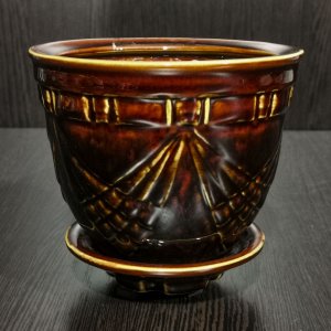 Керамический горшок с поддоном "Фиеста №3", 1 сорт, коричневый. Котовская керамика.