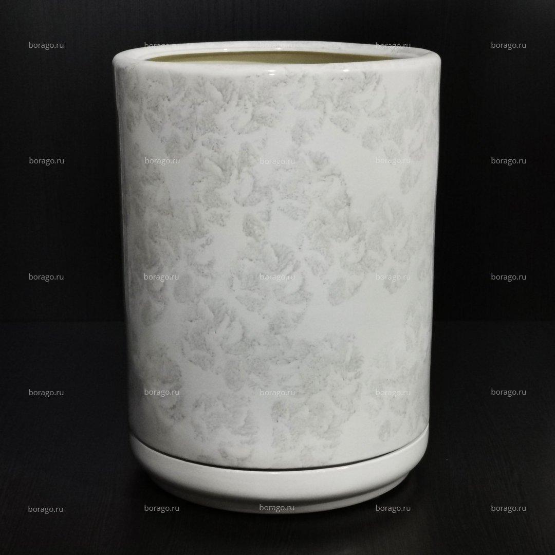 Керамический горшок с поддоном "Цилиндр средний", 1 сорт, белый. Котовская керамика