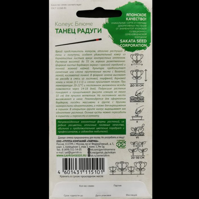 Колеус "Танец радуги", Саката, серия "Эксклюзив", Н22, 4 шт. Гавриш.