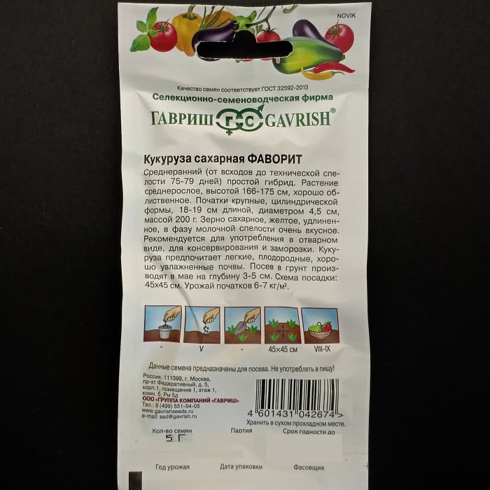 Кукуруза "Фаворит", сахарная, 5 гр. Гавриш.