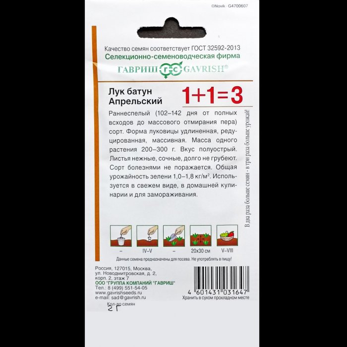 Лук батун "Апрельский", серия "1+1", 1 гр. Гавриш.