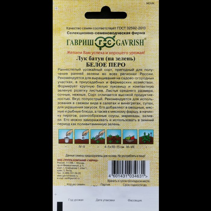 Лук батун "Белое перо", на зелень, серия "Семена от автора", 0,5 гр. Гавриш.