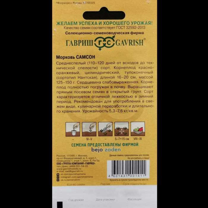 Морковь "Самсон", Голландия, 0,5 гр. Гавриш.
