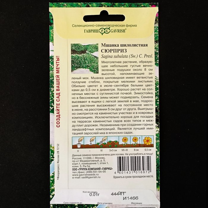 Мшанка "Сюрприз", шилолистная, серия "Альпийская горка", 0,01 гр. Гавриш.
