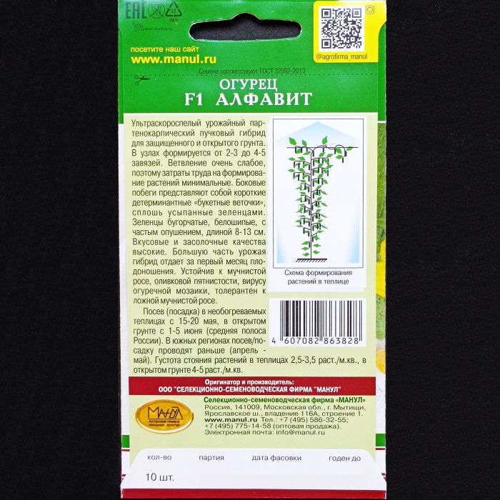 Огурец "Алфавит", F1, 10 шт. Манул.