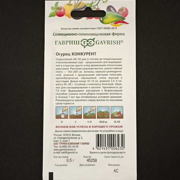 Огурец "Конкурент", 0,5 гр. Гавриш.