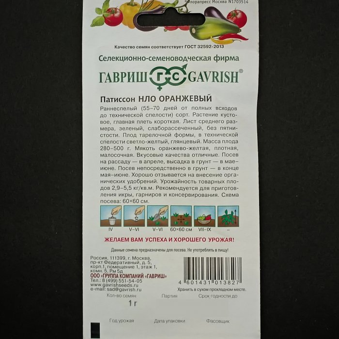 Патиссон "НЛО", оранжевый, 1 гр. Гавриш.