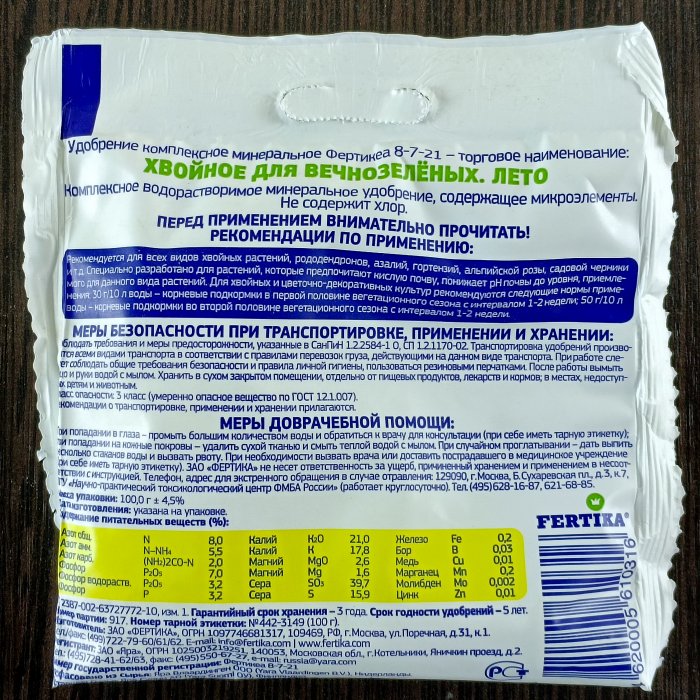 - Рекомендуется для всех видов хвойных растений, рододендронов, азалий, гортензий, альпийской розы, садовой черники и т.д.